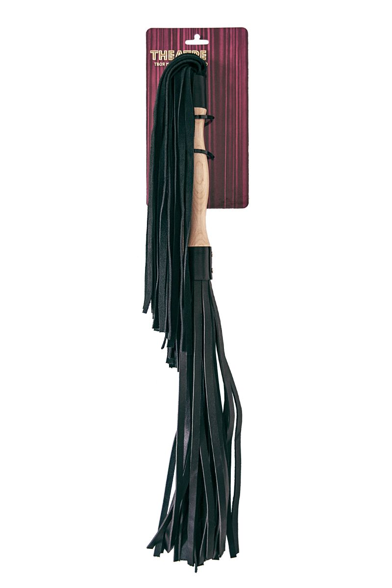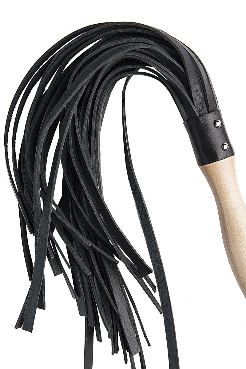 Двусторонний флоггер с точеной лакированной ручкой. Хвосты разной жесткости с разных сторон: мягкая замша для разогрева и щадящего воздействия с одной стороны, жесткая кожа для серьезной работы с другой. Ручка с удобным захватом. Длина хвостов - 37 см. Длина ручки - 26 см.