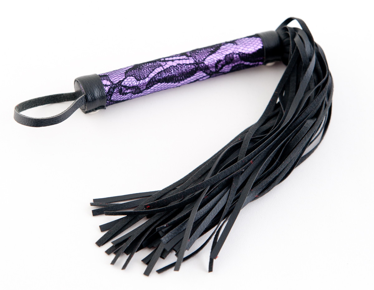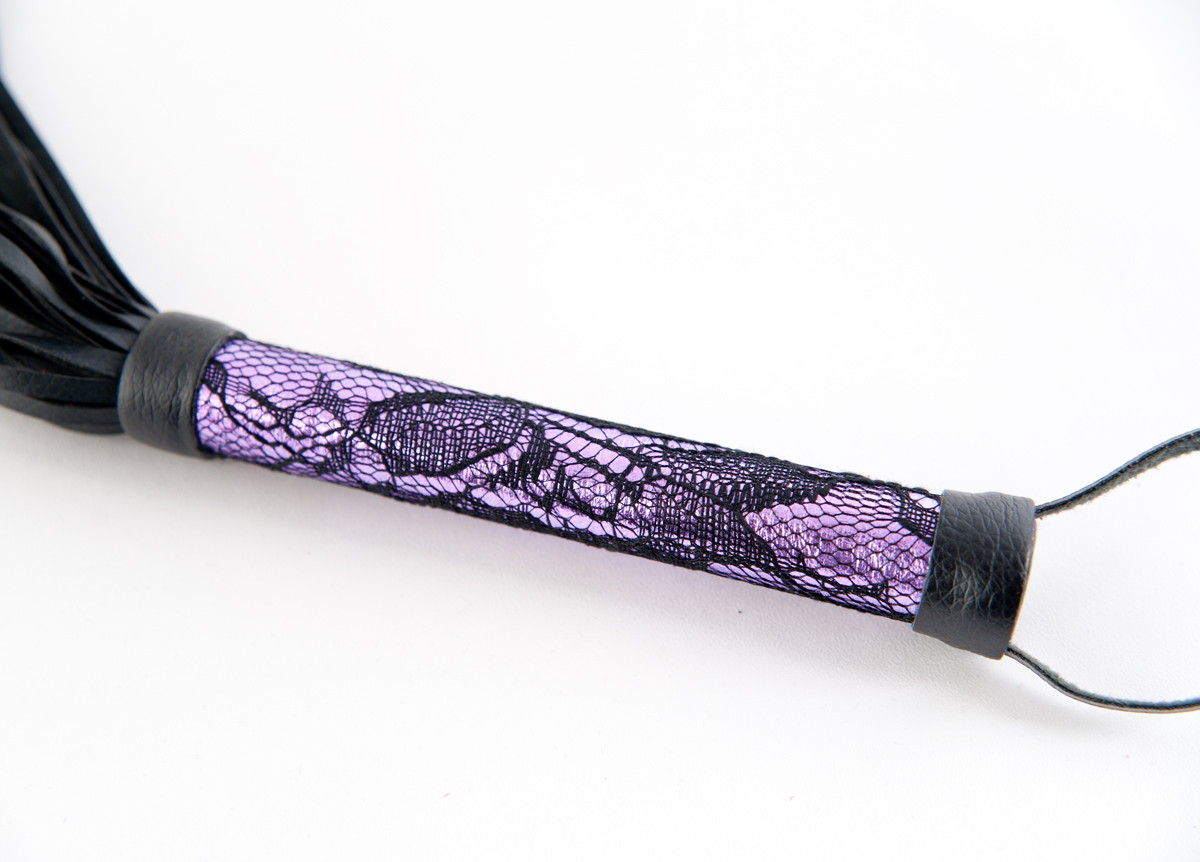 Королевское сочетание пурпура и кружева только для высокопоставленных особ. Прекрасная госпожа - самое точное определение для дамы с таким флоггером. Беспрекословное подчинение обеспечено.