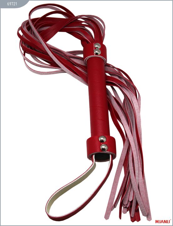 Флогеры Mjanu - высококачественные изделия с современной фурнитурой и аккуратными креплениями. Изготавливаются из натуральной кожи c PU покрытием, которая сохраняет свойство натуральной кожи пропускать воздух и устойчивость к деформации, но в отличии от натуральной кожи имеет более привлекательный внешний вид. Усиленная ручка с оплёткой наряду с мягкостью полос обеспечивает безопасность при использовании. Длин полос - 56 см., ширина - 0,6 см. Длина ручки — 13 см. Длина петли — 11 см.