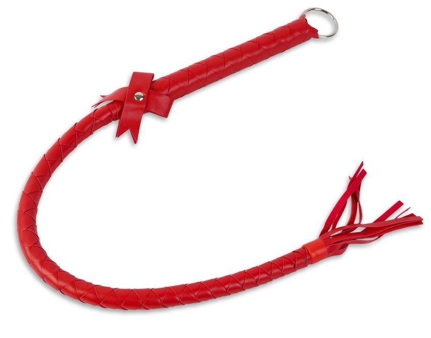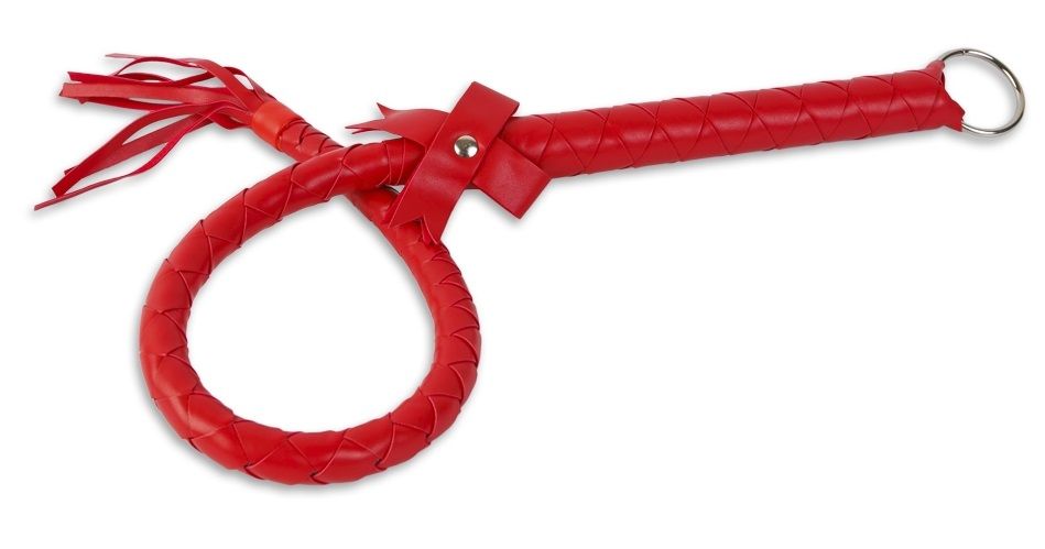 Роскошный девайс для ударных воздействий. Заставьте вашего партнера трепетать от ожидания – пусть мягкое местечко, которое получит удар, будет для Сабмиссива полной неожиданностью! Хлыст средней длины изготовлен из кожзаменителя красного цвета. Ударный девайс выполнен в виде плетеной верёвки. Ударная часть соединяется с рукояткой рваным узлом. На рукоятке также есть металлическое колечко для крепления других атрибутов.