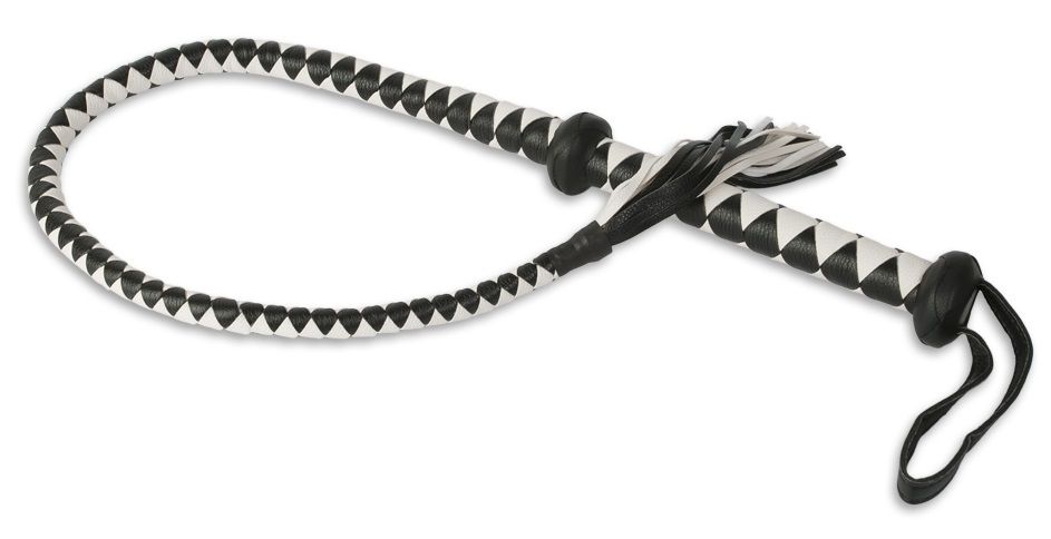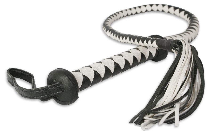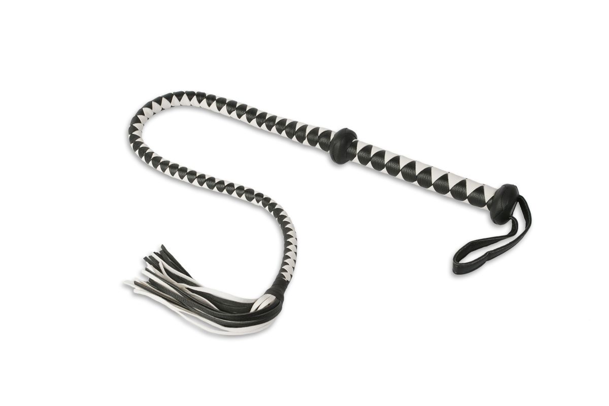 Предстаньте перед своим партнером с этим атрибутом – он выполнит всё, что вы прикажете! Начните с легких прикосновений кончиком кнута, а позже осуществите ощутимый удар по мягкому месту. Плетёный кнут выполнен из черного и белого кожзаменителя. Благодаря жесткой рукоятке и петле для руки кнутом легко управлять.