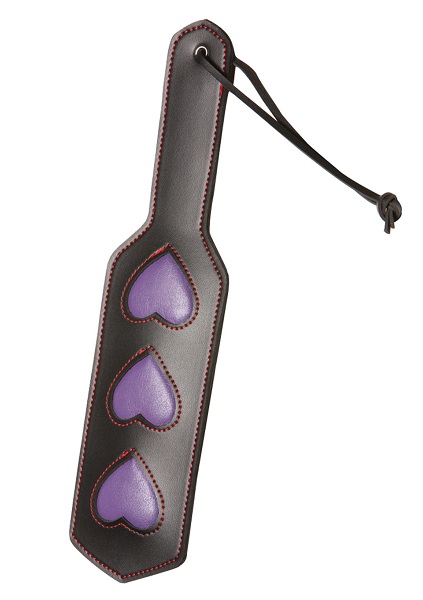 Фиолетовые вставки на лицевой части жалят кожу, стоит вам только с силой опустить пэддл на «нижнего». Удары этого девайса, выполненного из чёрной искусственной кожи, оставят на теле розовые следы в форме сердечек. Чтобы в запале шлёпалка не выпала из рук, накиньте петлю на запястье. Теперь только вы, саб, чувственная порка и обоюдное наслаждение! Общая длина - 33 см. Ширина рукоятки - 4 см.