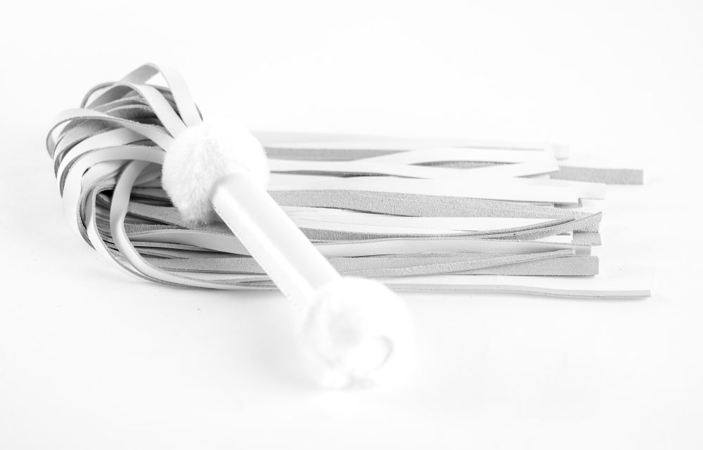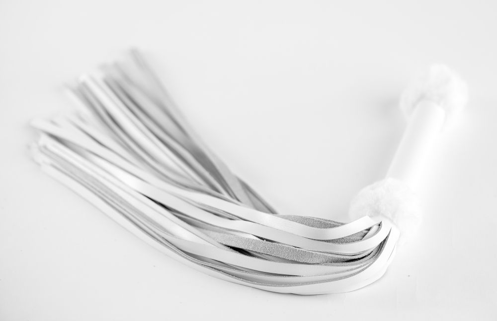 Роскошная плеть из натуральной кожи белого цвета. Ручка декорирована белоснежным мехом. Очень красивый и функциональный аксессуар! Длина ручки - 17 см.