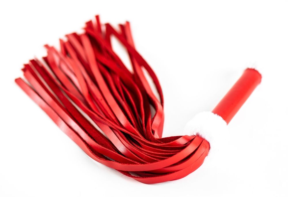 Роскошная плеть из натуральной кожи красного цвета с декором в виде белоснежного меха. Очень красивый и функциональный аксессуар! Длина ручки - 17 см.