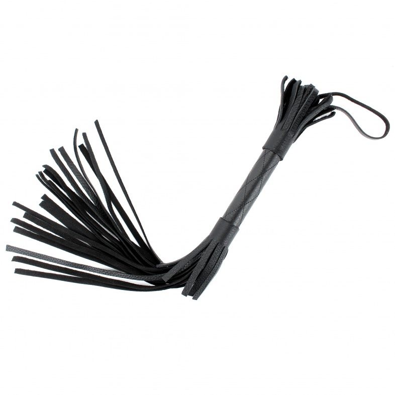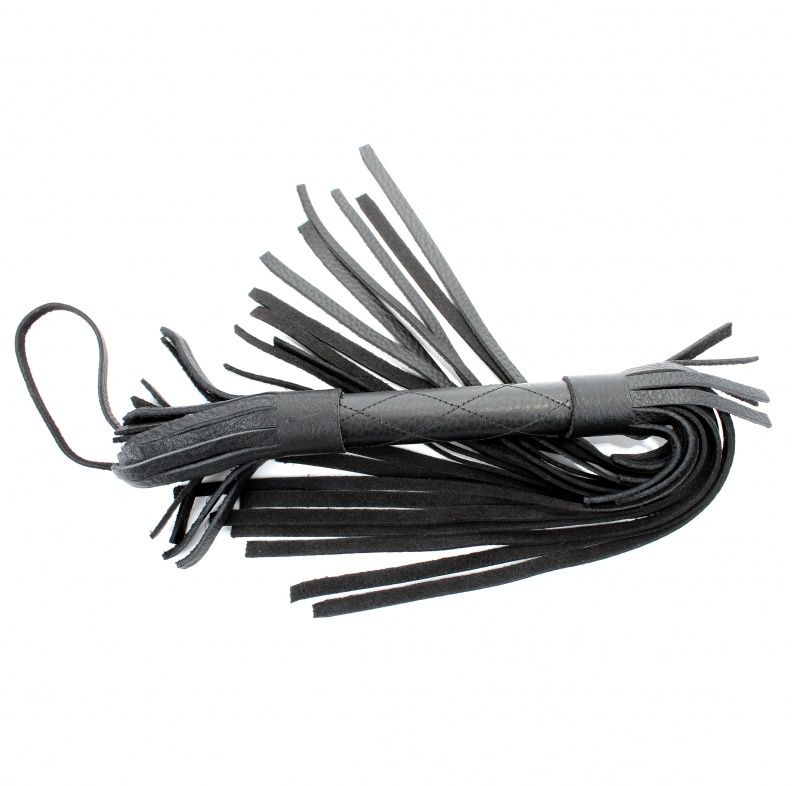 Аккуратная черная плетка, изготовленная из натуральной кожи. Имеет жесткую ручку, также покрытую кожей. Имеется петля для удобного использования плети. Длина ручки - 17 см. Длина хлыстов - 27 см.