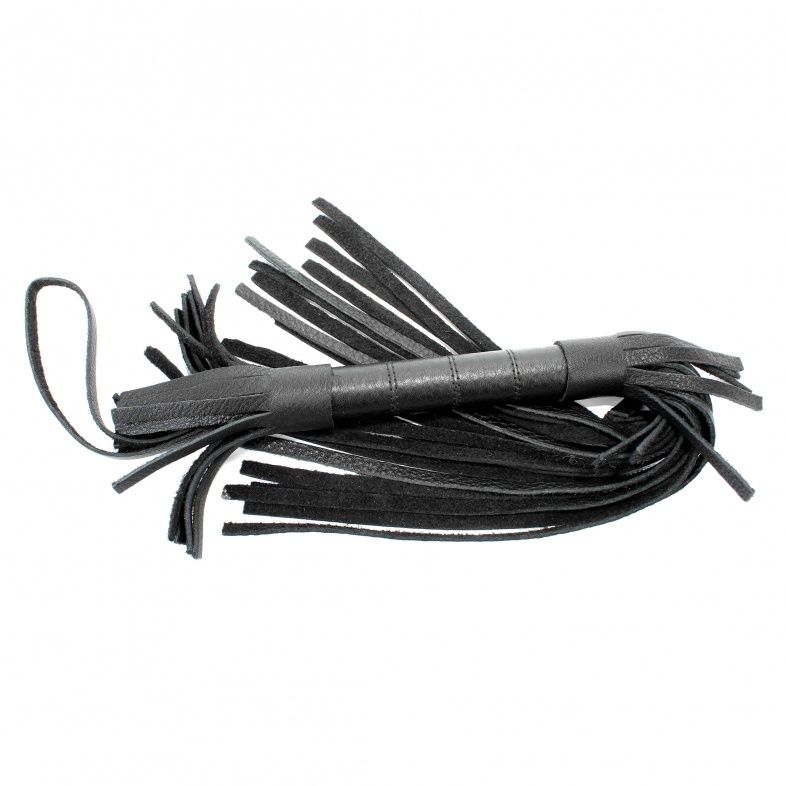 Аккуратная черная плетка, изготовленная из натуральной кожи. Имеет жесткую ручку, также покрытую кожей. Имеется петля для удобного использования плети. Длина ручки - 18 см. Длина хлыстов - 27 см.