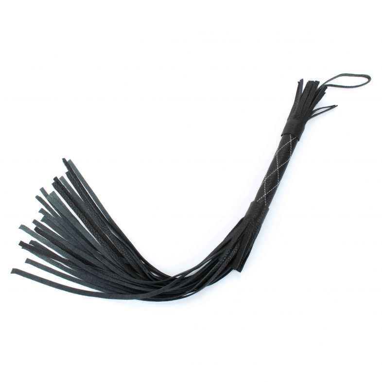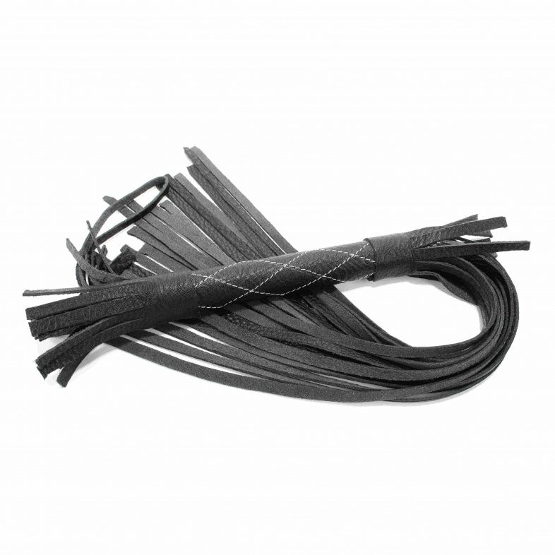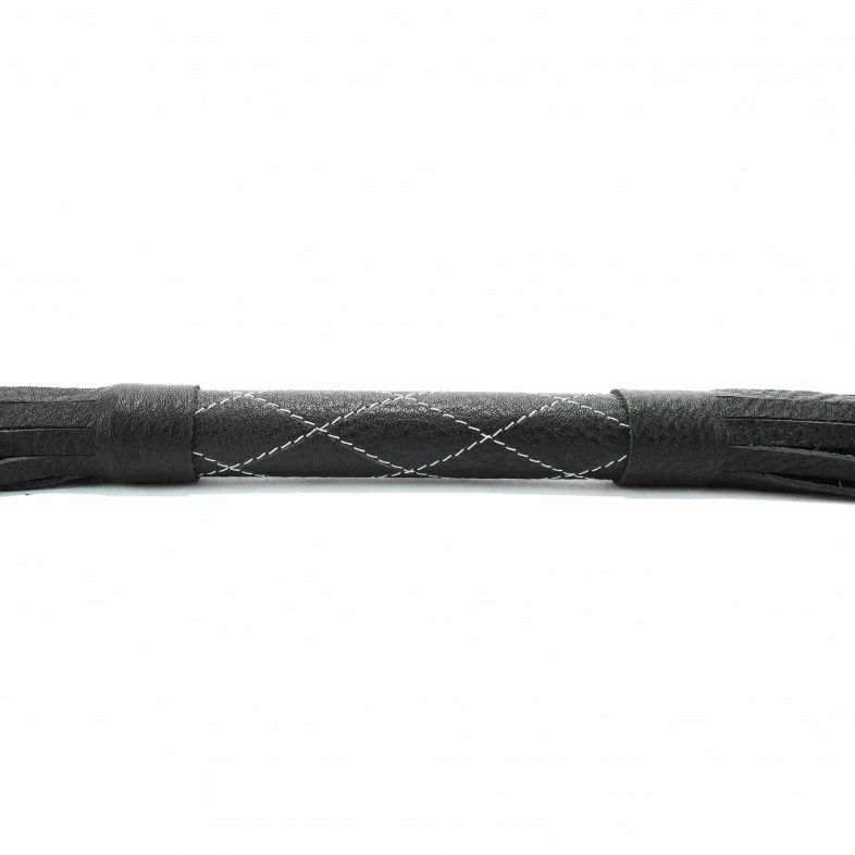 Аккуратная черная плетка, изготовленная из натуральной кожи. Имеет жесткую ручку длиной 17 см, так же покрытую кожей. Имеется петля для удобного использования плети. Длина ручки - 17 см. Длина хлыстов - 42 см.