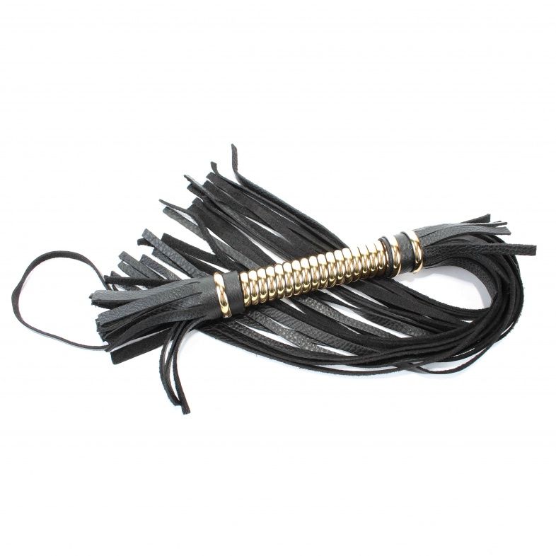 Плетка изготовлена из кожи, является одной из наиболее популярных секс-игрушек. БДСМ-атрибутика с жесткой рукоятью со стильной золотистой оплеткой поможет расширить границы удовольствия.