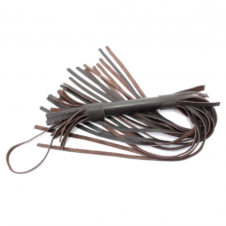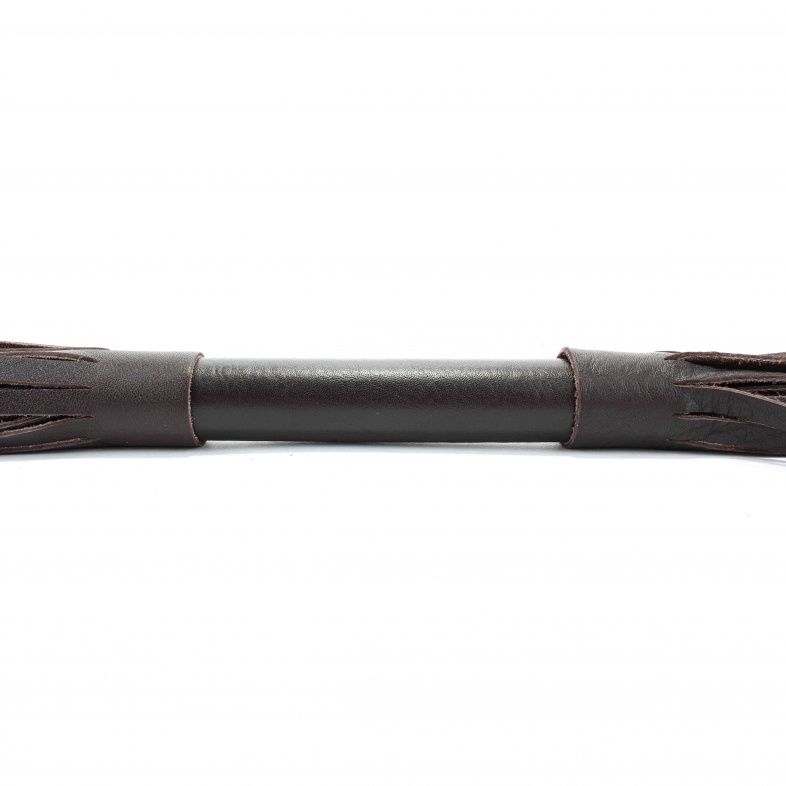 Аккуратная плетка коричневого цвета, изготовленная из натуральной кожи. Имеет жесткую ручку, также покрытую кожей. Имеется петля для удобного использования плети. Длина хлыстов - 39 см.