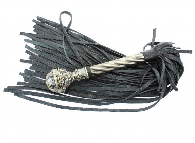 Чёрная многохвостая плеть с кованой рукоятью