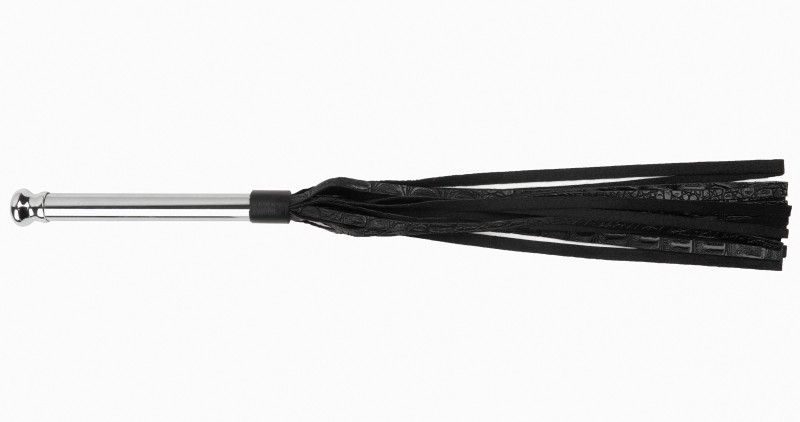 Чёрная многохвостая плеть с металлической ручкой БДСМ арсенал 911-15 BX DD (44 см)