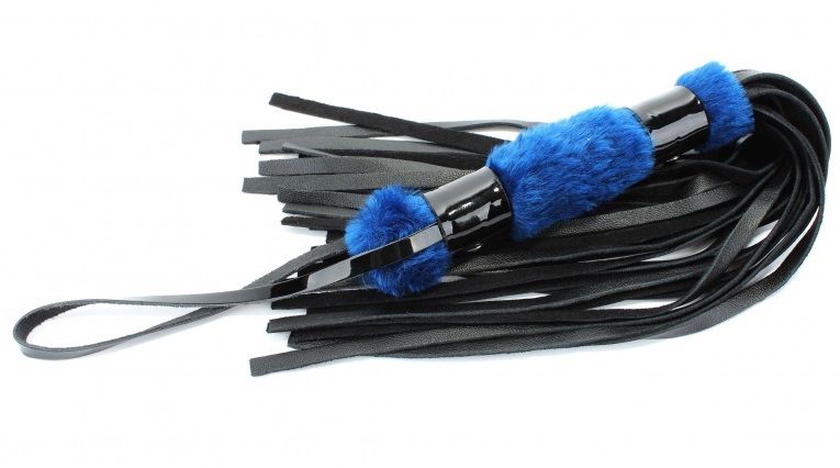 Чёрная нежная плеть с синим мехом