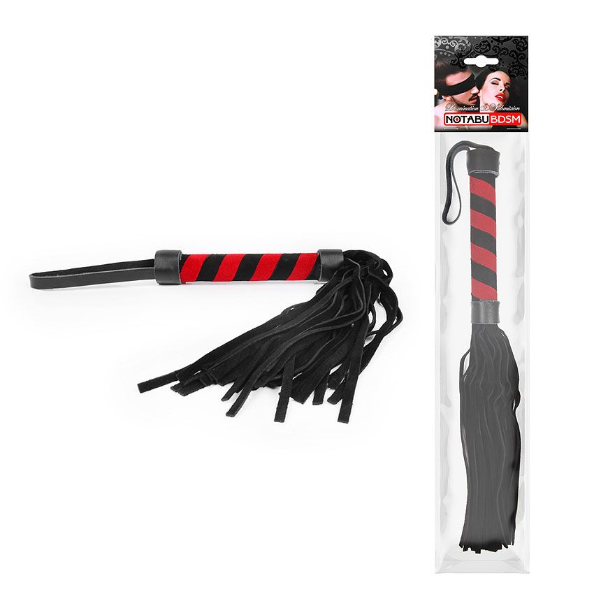 Чёрная многохвостовая плеть с круглой чёрно-красной ручкой Bior toys NTB-80514 (39 см)