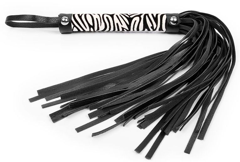 Чёрная многохвостовая плеть с круглой ручкой-зеброй