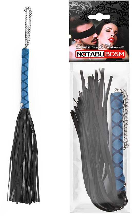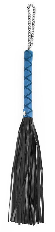Чёрная многохвостая плеть-флоггер с синей ручкой