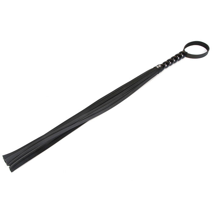 Черная плеть настоящего хозяина с оригинальной рукоятью. Шнуры выполнены из качественной искусственной кожи и с обратной стороны покрытые мягким ворсом. Благодаря необычной форме рукояти плеть очень удобно и приятно сидит в руке. От основания рукояти отходит петля. Длина шнуров - 38 см. Длина рукояти без петли - 15 см.