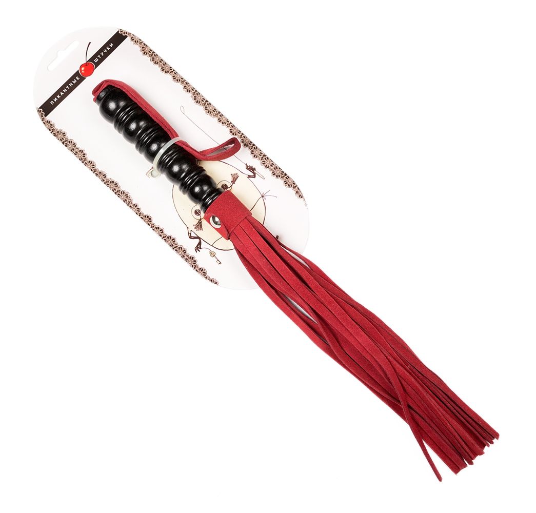 Небольшая плеть из замши. Выполнена в стильном бордовом цвете. Имеет жесткую рукоять и петлю. Общая длина 29 см. Длина плети 18 см. Длина хвостов - 18 см.