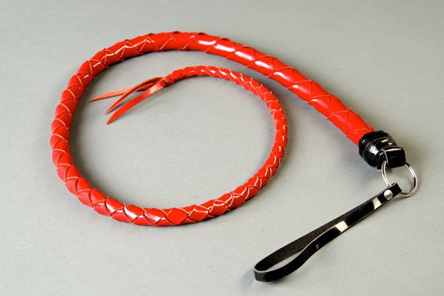 Однохвостая плеть из натуральной лаковой кожи красного цвета. Плетение кнутовое. Сердцевина выполнена из силикона.