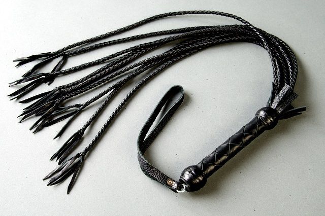 Плеть многохвостая. Девять плетеных хвостов, плетеная кожаная ручка. Изготовлена из натуральной кожи черно цвета. Авторская работа. Длина хвостов - 50 см.