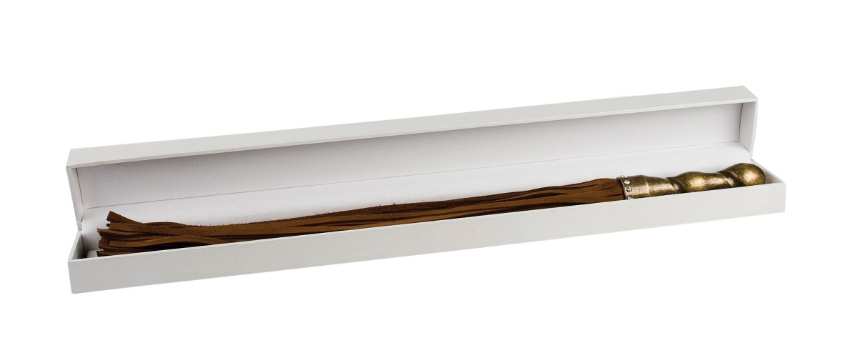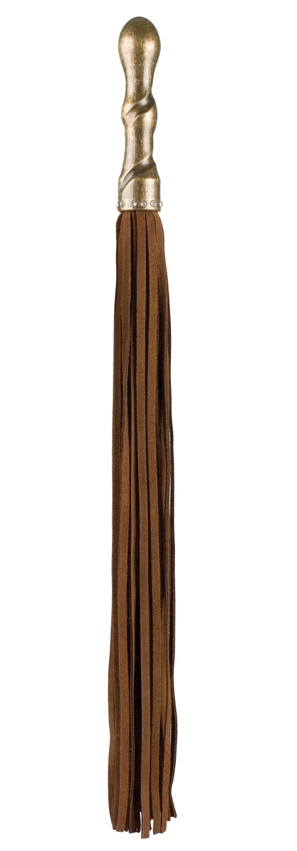 Плетка премиум-класса, изготовленная из натуральной кожи (хлысты). Тяжелая рукоять, покрытая медью и украшенная 12 кристаллами Сваровски. Длина рукояти - 12 см. Диаметр - 2,3 см.