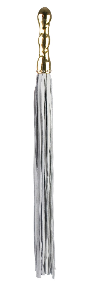 Плетка премиум-класса, изготовленная из натуральной кожи (хлысты). Тяжелая рукоять, покрытая золотом в 18 карат и украшенная 12 кристаллами Сваровски. Длина рукояти - 12 см. Диаметр - 2,3 см.