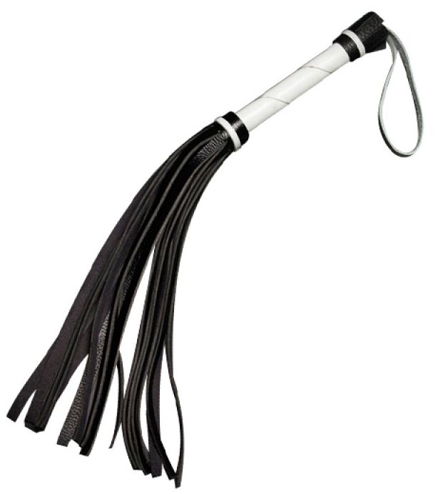 Белая гладкая плеть-флогер с чёрными хвостами Sitabella 3011-13 (40 см)