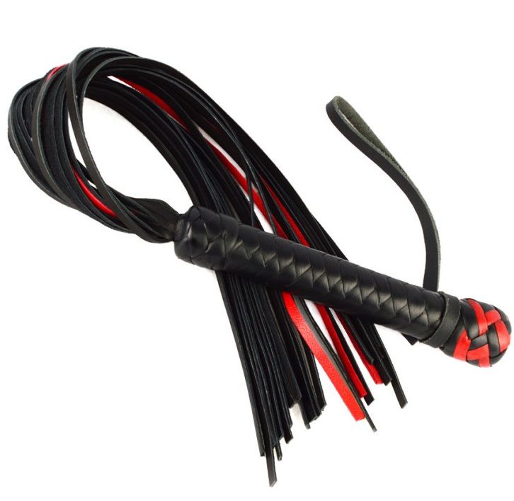 Роскошная кожаная плеть разнообразит вашу сексуальную жизнь и позволит переступить за грань дозволенного удовольствия. Ударная часть представлена в виде плоских кожаных лент. Кожаная оплётка рукояти, придает плети особую сексуальность и шарм. Длина рукояти - 20 см.