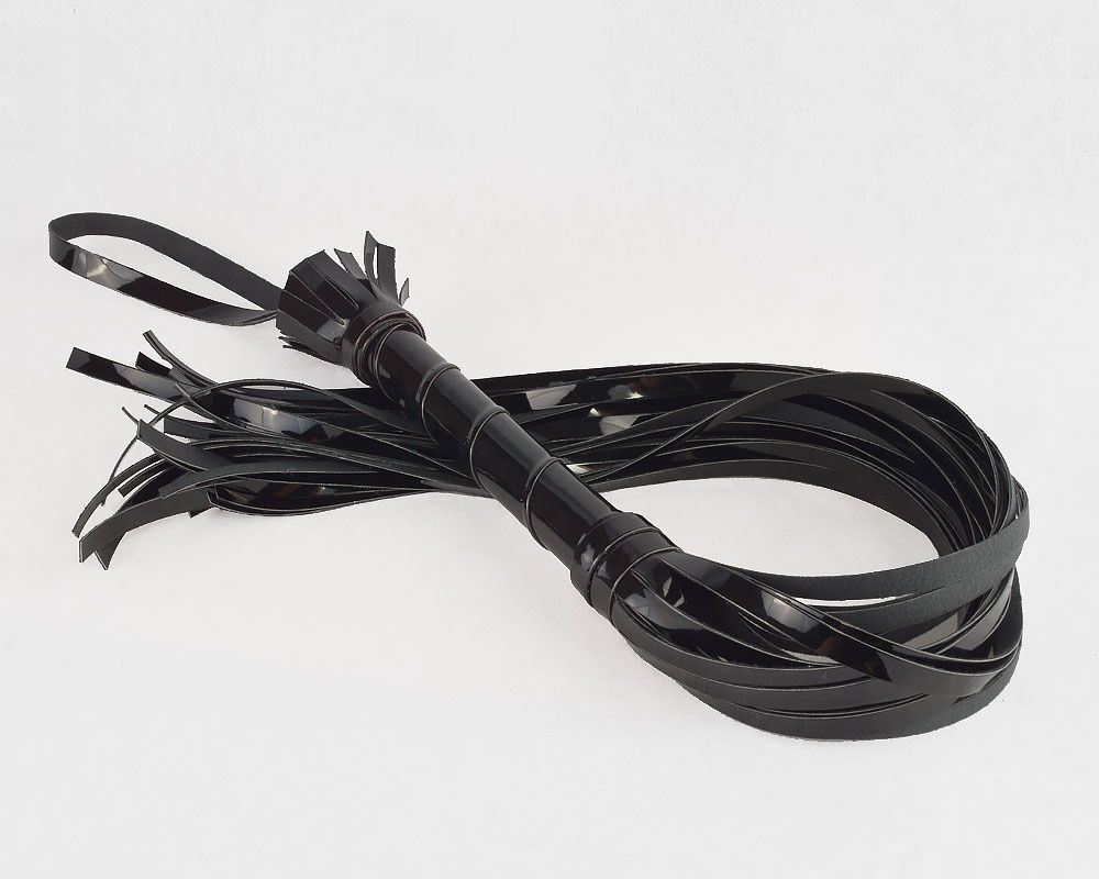 Гладкая лаковая плеть (флогер) изготовлена из искусственной кожи, цвет - черный. Состоит из жёсткой рукояти и ударной части из 24 хвостов. Используется в основном для разогрева (начало флогеляции), Идеально подходит для использования, как мужчиной, так и женщиной.