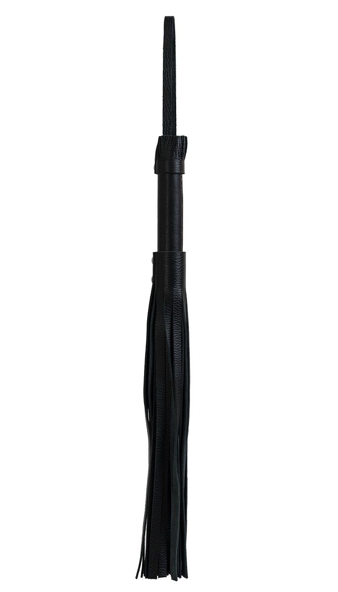 Аккуратная черная плеть из натуральной кожи с ручкой, обтянутой кожей, украшенная декоративной кисточкой. Имеется петля для удобного использования девайса. Длина хвостов - 34 см.