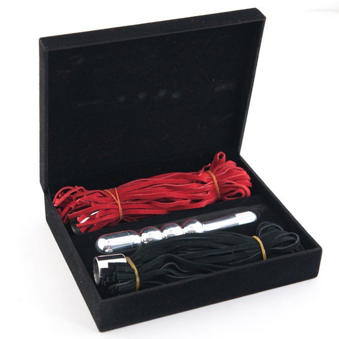 Анальная втулка с двумя сменными плетками - чёрной и красной Длина каждой плети - 35 см.
