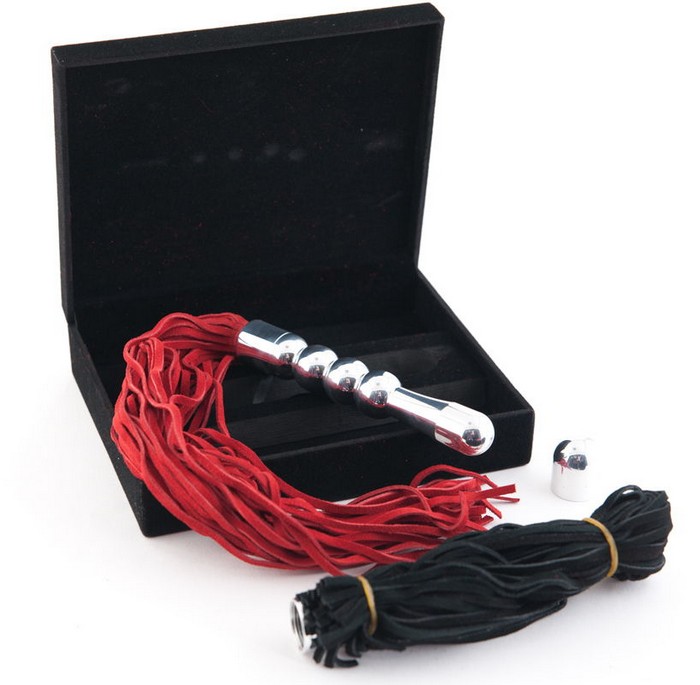 Анальная втулка с двумя сменными плетками, чёрной и красной