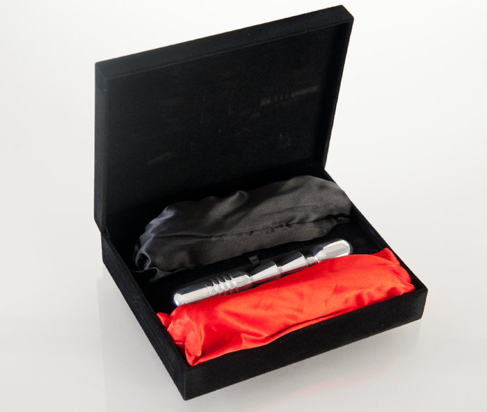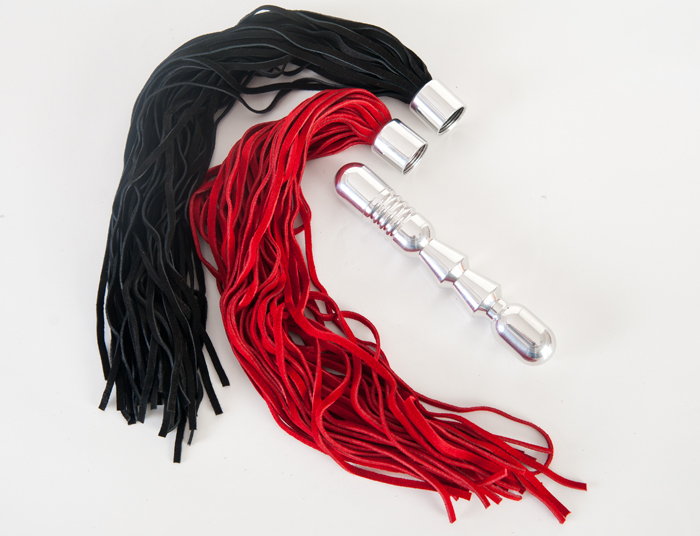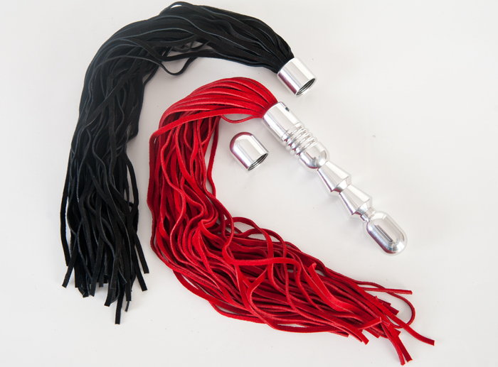 Металлическая анальная втулка с двумя сменными плетками - черной и красной. Длина каждой плети - 35 см.
