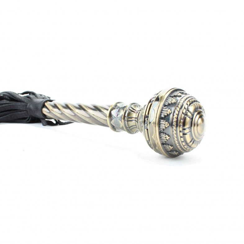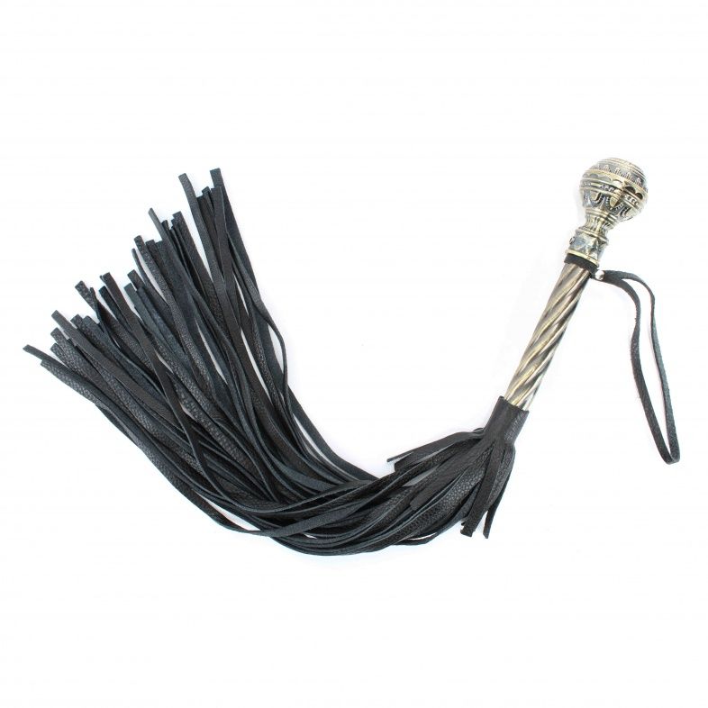 Плеть из натуральной кожи. Рукоятка из металла с резной, кованной ручкой и кожаным ремешком. Длина рукояти - 23 см.