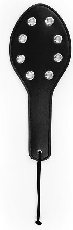 Оригинальная шлёпалка для любителей БДСМ-забав подарит множество ярких, незабываемых эмоций. Форма изделия с широкой рабочей поверхностью и удобной ручкой позволит использовать его максимально эффективно. Петлю на конце секс-игрушки можно намотать на запястье. Интимный аксессуар идеально подходит для разогрева перед интимной близостью, а также в качестве элемента в ролевой игре. На рабочей поверхности шлёпалки имеются металлические вставки, которые добавят остроты ощущениям в процессе флогеляции.