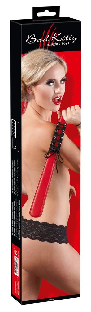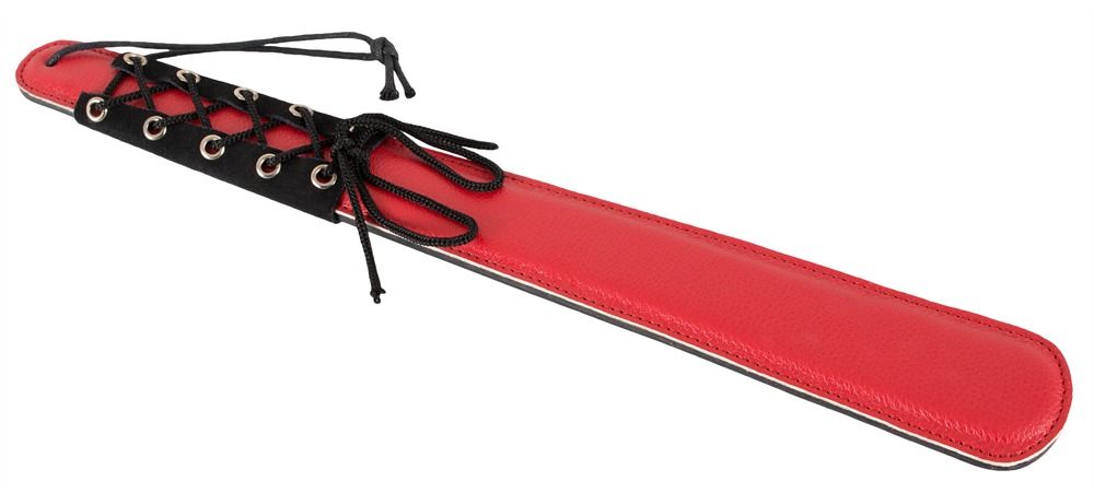 Широкая красная шлепалка со шнуровкой на рукоятке. Ширина - 5 см.