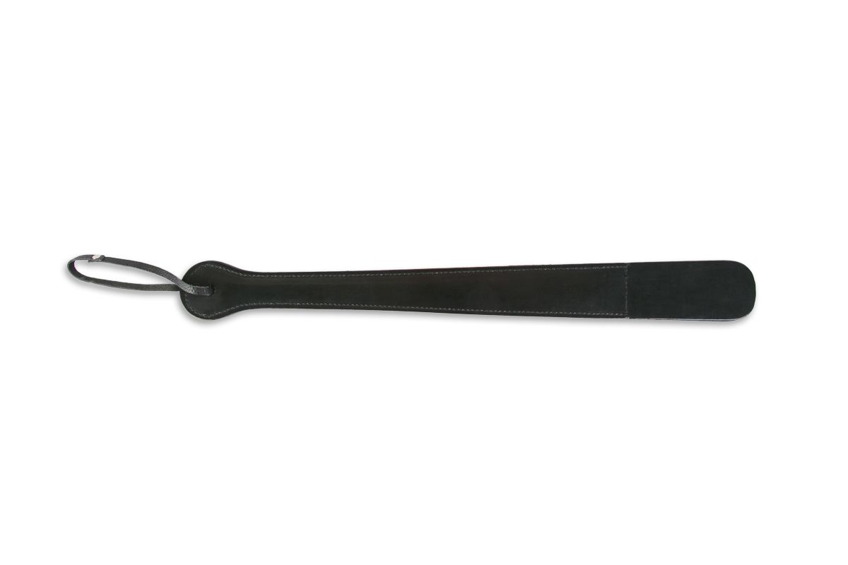 Классический атрибут для ударов по мягким местам, который может еще и подчеркнуть ролевую принадлежность Доминанта. Мягкая шлёпалка из эко-кожи не доставит много боли, однако сможет разжечь пыл в вас обоих. Снабжена небольшой петлёй, за которую аксессуар можно повесить на стул или кровать. Ширина- 5 см.