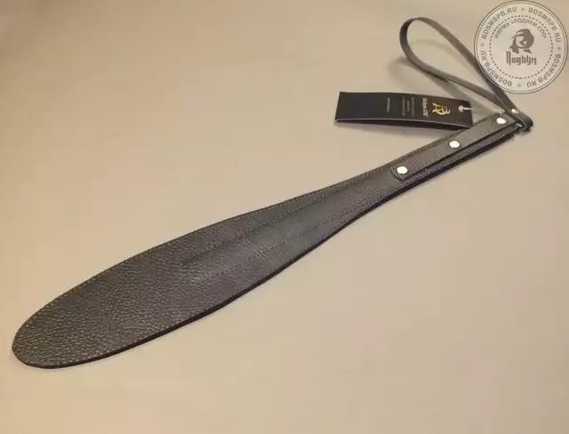Спанкер выполнен из черной матовой кожи в форме лепестка . Пружинящая вставка из полимерного материала придает спанкеру гибкость. Используется для работы по ягодицам и по верхним мышцам внутренней стороны бедра. Рукоять украшена вставкой из красной кожи и фурнитурой. Прост в применении и безопасен. Во избежании травм не рекомендуется наносить удары ребром. Ручная работа. Ширина ударной части - от 6,5 до 3 см. Длина ударной части (до рукояти) - 30 см.