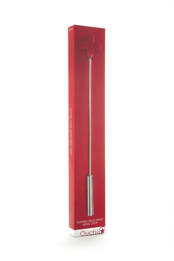 Красная шлёпалка с наконечником-крестом Shots Media BV Leather Cross Tiped Crop OU015RED (56 см)