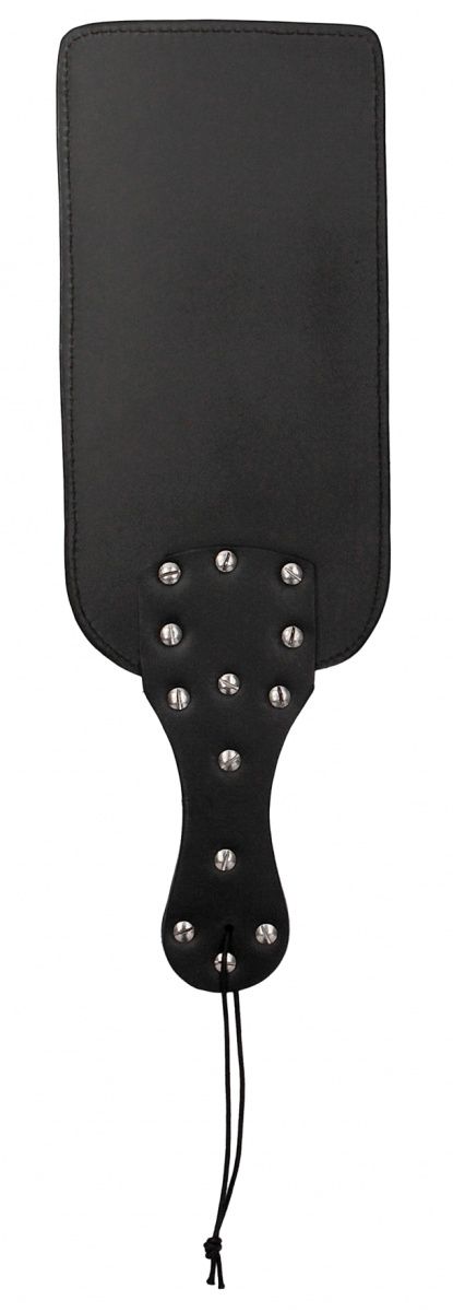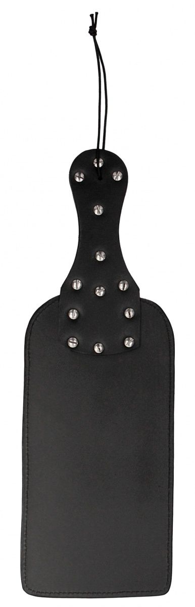 Шлепалка Studded Paddle. Вытяните свою кисть для щекочущих спинной мозг ударов и тяжелых жалящих ударов с помощью этой биты с выступами STUDDED PADDLE из прочной седельной кожи. Наносите удар за ударом со впечатляющей силой и оставьте ягодицы розовыми! Эта кожаная бита с выступами позволяет наносить разные громкие шлепки и слабые и сильные удары и идеально подходит для пар, которые хотят перевести свои ощущения от биться на следующий уровень! The OUCH! Studded Paddle имеет эргономичную ручку и кожаную кистевую лямку для идеального захвата при каждом замахе. 18 выступов расположены на одной стороне, а другая - мягкая и гладкая. Ширина рукояти - 13,5 см.