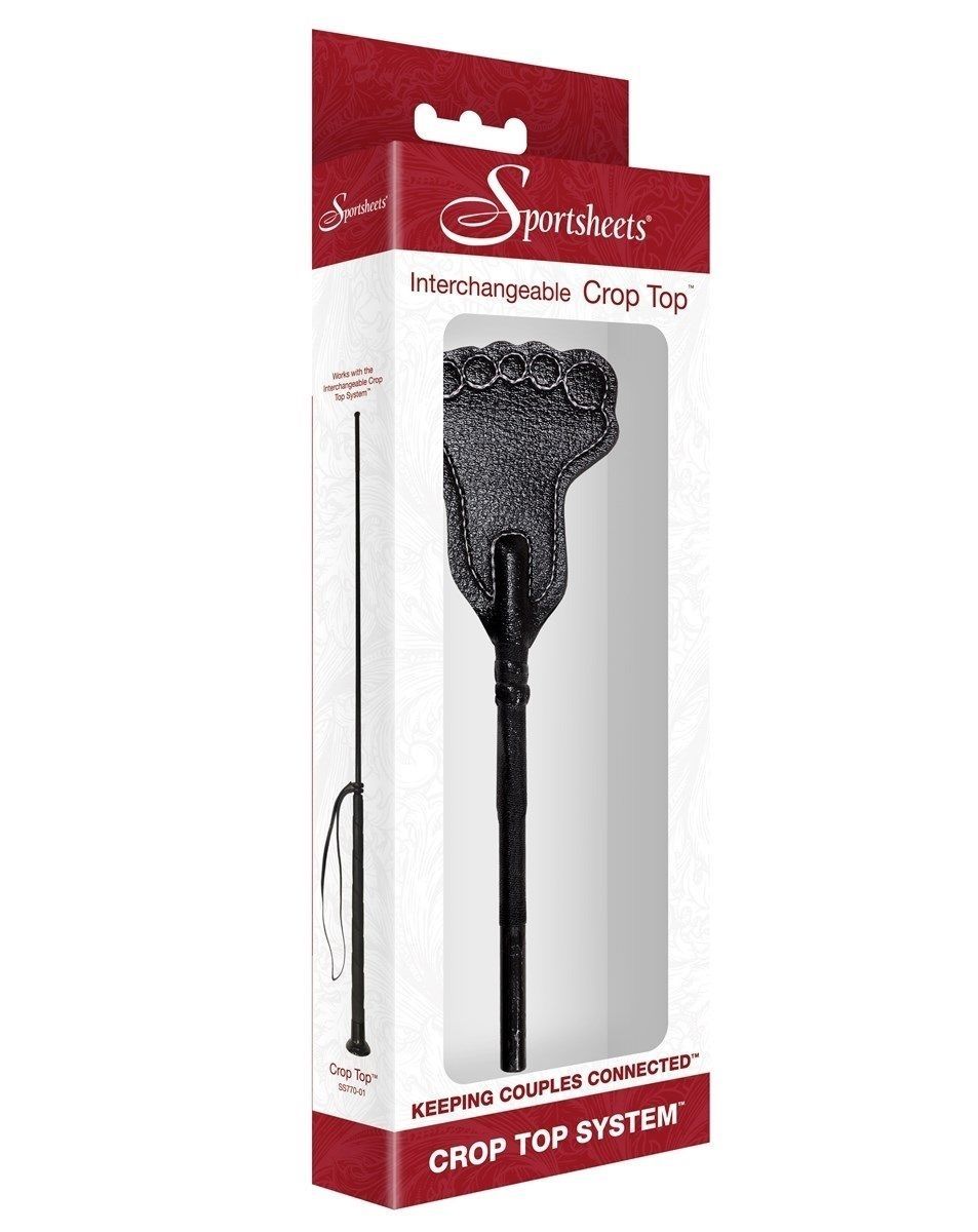 Чёрная насадка с шлепком-ступнёй для системы Top Crop от Sportsheets. Основание приобретается отдельно.