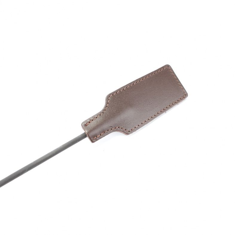 Стек сделан из прочного сердечника с оплетением из кожи. Наконечник в виде хлопушки из кожи для осуществления ударов. Также на ручке присутствует кожаная петля, которая позволяет закрепить стек при проведении наказания партнёра. Девайс отлично подходит для БДСМ игр. Мягкая и гибкая конструкция позволяет избежать повреждений тела даже при сильных ударах. Хлопушка сделана из подшитой кожи, рукоятка стека жёсткая, обшита кожей. Размеры хлопушки - 11 х 4 см.