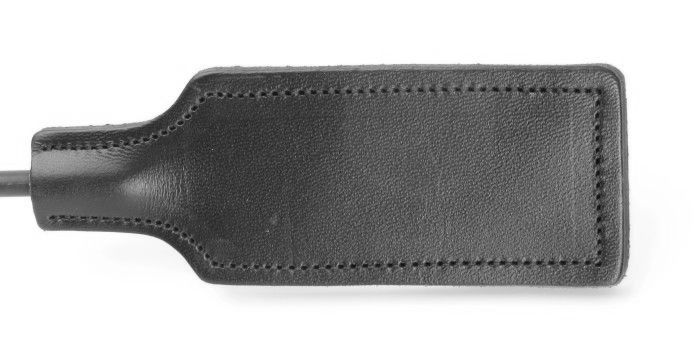 Стек сделан из прочного сердечника с оплеткой из кожи. Наконечник в виде хлопушки из кожи для осуществления ударов. Также на ручке присутствует кожаная петля, которая позволяет закрепить стек при проведении наказания партнёра. Девайс отлично подходит для БДСМ игр. Мягкая и гибкая конструкция позволяет избежать повреждений тела даже при сильных ударах. Хлопушка сделана из подшитой кожи, рукоятка стека жёсткая, обшита кожей и имеет петлю для фиксации Размеры хлопушки - 11 х 4 см.