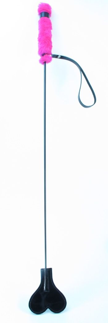Стек сделан из прочного сердечника с оплеткой из меха. Оформлен БДСМ девайс наконечником в виде сердечка из лаковой кожи для осуществления ударов. Также на ручке присутствует кожаная петля, которая позволяет закрепить стек при проведении наказания партнёра. Девайс отлично подходит для БДСМ игр. Мягкая и гибкая конструкция позволяет избежать повреждений тела даже при сильных ударах. Хлопушка сделана из лаковой кожи, рукоятка стека жёсткая, обшита мехом розового цвета и имеет петлю для фиксации. Ширина хлопушки - 6,5 см.