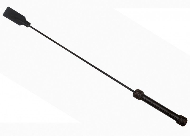 Хлесткий и изящный стек, который берет начало с лошадиных дерби, послужит прекрасным дополнением к образу строгой, но в тоже время элегантной госпожи в ролевом костюме или комплекте белья. Такая плеть, может быть использована как для легких, однако весьма ощутимых шлепков, вызывающих прилив крови к эрогенным зонам, так и для указания направления движения нижнего, или его положения во время БДСМ-игр. Гладкая ручка декорирована по краям кожаным плетением. Основательная хлопушка стека изготовлена из натуральной кожи высокого качества хлопушку и рукоять соединяет длинный, упругий, но прочный хлыст. Ширина шлепка - 4 см.