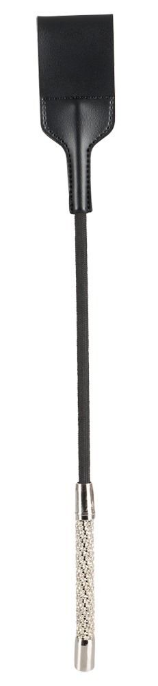 Короткий стек с ручкой, украшенной кристаллами. Стек пластиковый, шлепок из кожзама.