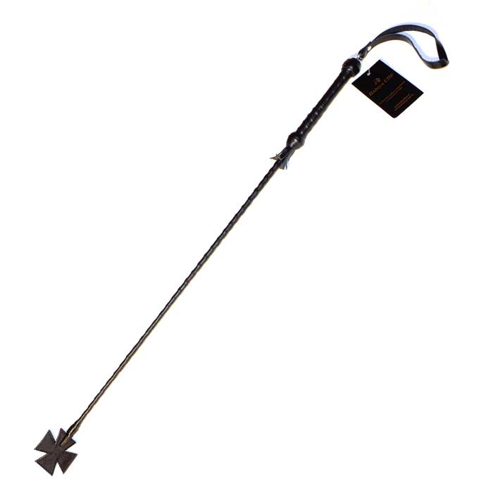 Чёрный длинный плетёный стек с наконечником-крестом