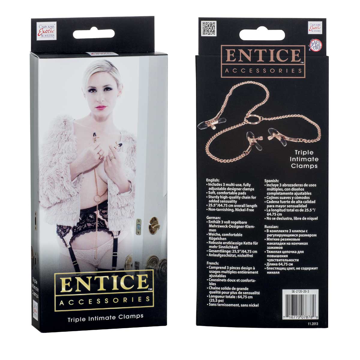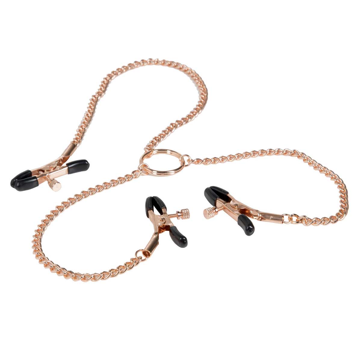 Золотистые зажимы для сосков и половых губ Triple Intimate Clamps из коллекции Entice. Неотъемлемый аксессуар большинства сексуальных образов. А так как позолота добавляет шик и грацию, данный аксессуар должен быть у каждой женщины. Длина - 64,75 см. Диаметр - 3,25 см.