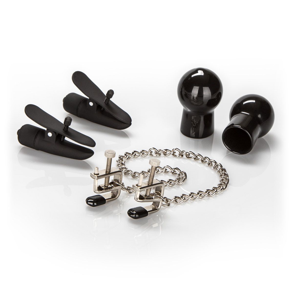 Эротический набор для мужчин His Nipple Kit: Зажимы позволяют зафиксировать их на соске любого размера, обеспечивая максимально полную стимуляцию и захватывая даже самые маленькие участки нервных окончаний. Вибрация будут щекотать и дразнить ваши соски, покачиваясь при каждом естественном движении, зажимы будут оказывать дополнительное стимулирующее воздействие за счет своего веса, даря массу восхитительных ощущений. В комплекте: зажимы на соски, насадки-присоски на соски, зажимы на соски с цепочкой, батарейки LR44 (6 шт.).