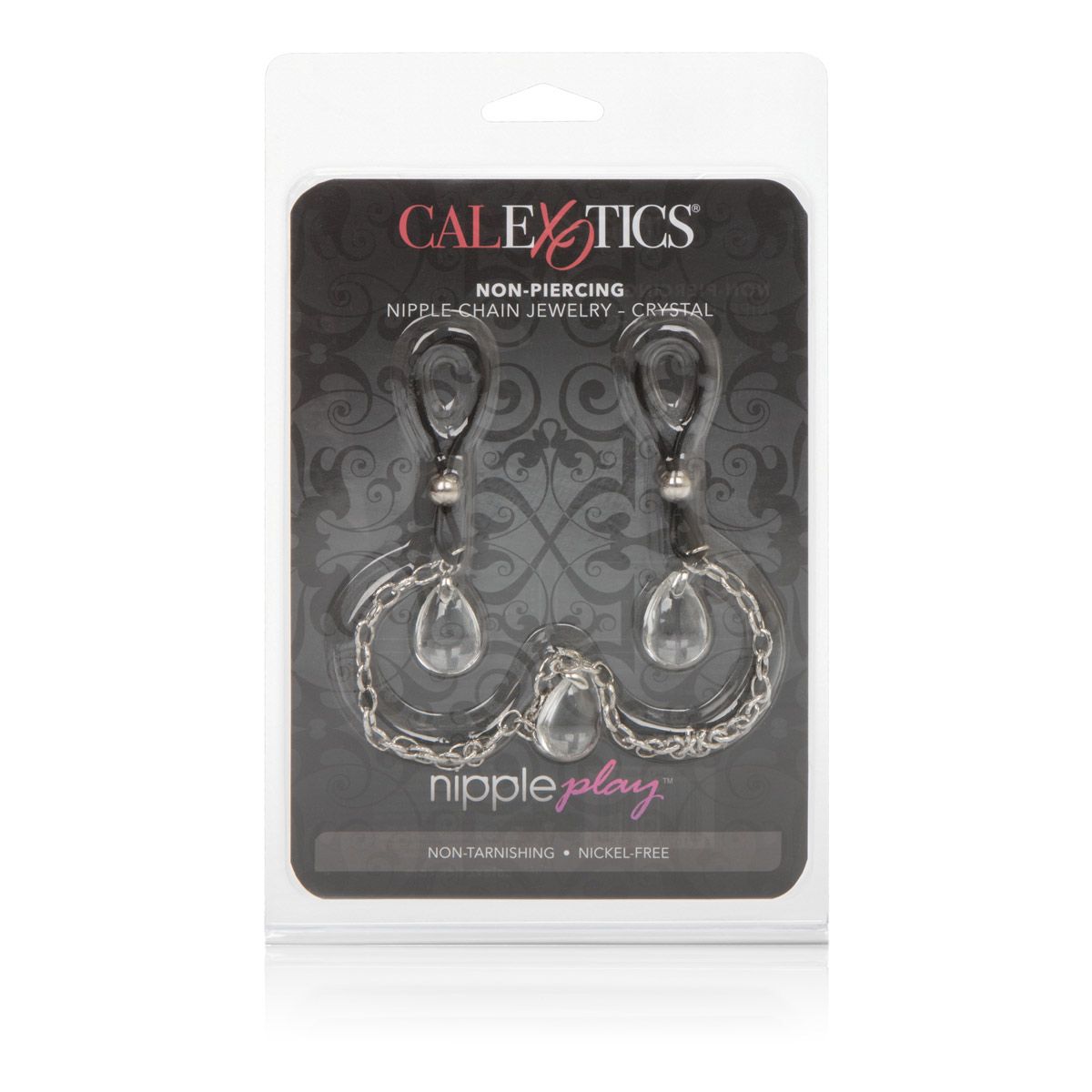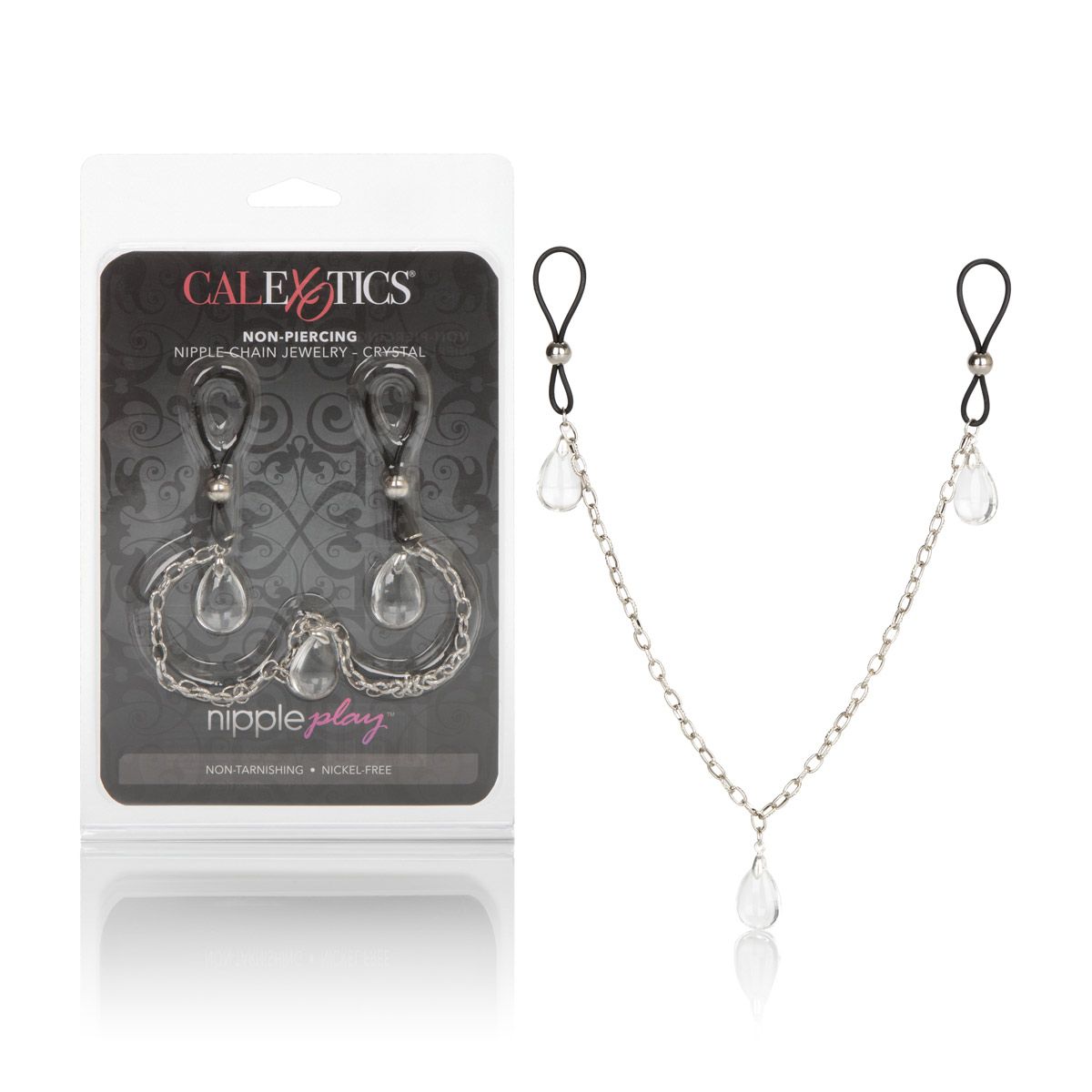 Зажимы на соски Non-Piercing Nipple Chain Jewelry на цепочке с украшением в виде подвески с кристаллом служат дополнительным стимулятором одной из самых чувствительных зон. Включают в себя 2 полностью регулируемых многофункциональных зажима в виде петельки. Размер каждого зажима - 6,25 см.