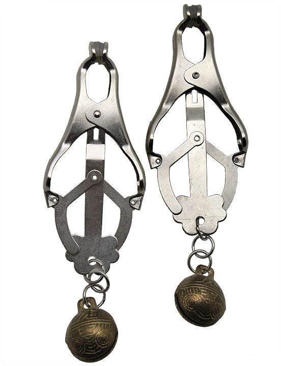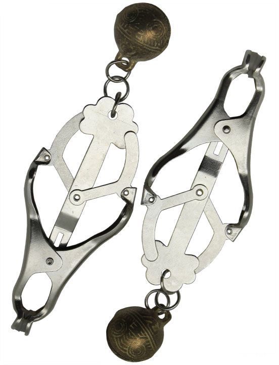 Зажимы на соски из коллекции PentHouse. Металлические зажимы со звенящими шариками сделаны с мягкими силиконовыми накладками, для предотвращения микротрещин сосков.